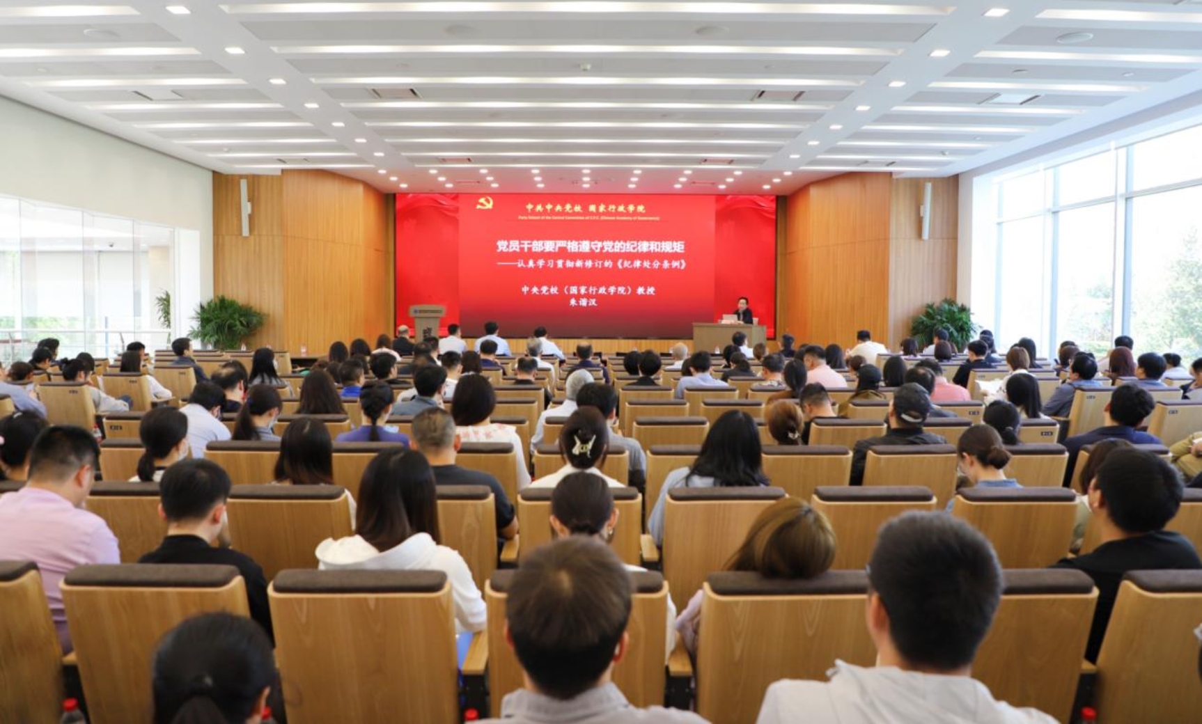 朱諧漢以《黨員干部要嚴格遵守黨的紀律和規矩》為題,圍繞新修訂的《中國共產黨紀律處分條例》(以下簡稱《條例》),結合大量的真實案例以案釋紀、以案示警,對新修訂《條例》進行系統全面、深入細致的講解,進一步明晰了紀律建設對縱深推進全面從嚴治黨的重要意義,對黨員干部深刻理解和準確把握《條例》主旨要義和規定要求具有深刻啟發。