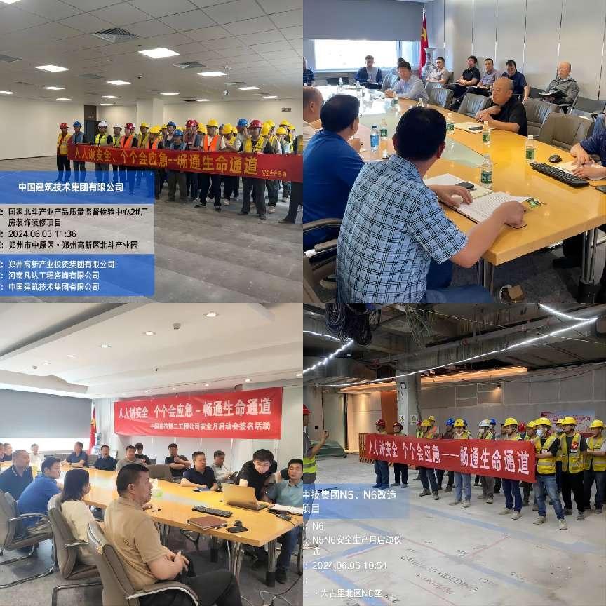 安全月期間,中國建技領導多次開展領導帶班檢查工作。中國建技安全生產監督管理部以安全文明施工、消防管理、汛期管理為重點,開展安全文明施工專項檢查工作。同時分支機構對所屬在施項目進行全面檢查,重點檢查危大、超危大工程以及重復出現的隱患,制定專項整改措施,重點落實。各在施項目以“暢通生命通道”為主題,開展隱患排查治理。