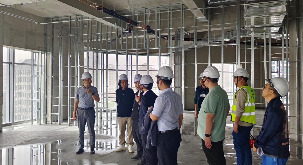 4月20日,中國建技黨委副書記、副總經理余湘北到華南分公司“未來之芯”(航天高技術應用中心)工程項目調研,檢查項目生產經營、安全質量環保管控及文明施工情況,并對項目工作進行指導。