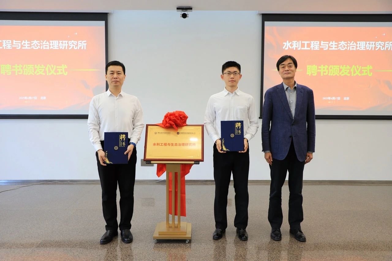 樊金龍、化建新、張沖共同為“水利工程與生態(tài)治理研究所”揭牌。李軍為所長毛宗原、副所長韓凱頒發(fā)聘書。? ? ?