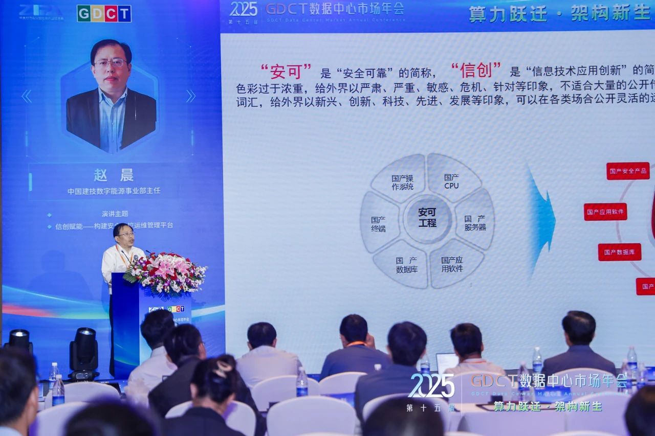 中國建技數字能源事業部總經理趙晨在《信創賦能—構建安全基礎設施平臺》演講中表示,數據中心作為信息化關鍵底座,面臨系統復雜性與關鍵基礎設施可靠性兩大核心挑戰。他從信創視角深入剖析了數據中心基礎設施建設的風險點,并提出了針對性的解決方案,強調構建自主可控的安全基礎設施平臺對保障數據中心高可用性的重要意義。