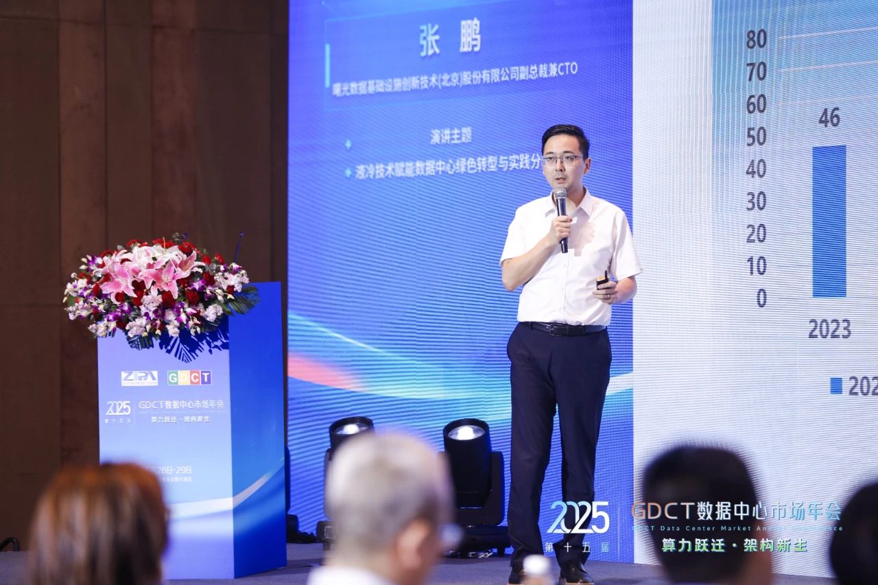 曙光數創副總裁兼CTO張鵬博士在會上分享了主題為《液冷技術賦能數據中心綠色轉型與實踐分享》的演講。他表示,隨著數字化進程加速,特別是人工智能技術的爆發式發展,數據中心面臨能耗攀升、散熱難題等多重挑戰,基礎設施建設亟待變革。液冷技術作為破解這些難題的關鍵技術路徑,已成為實現數據中心綠色高效運行的核心發展方向。