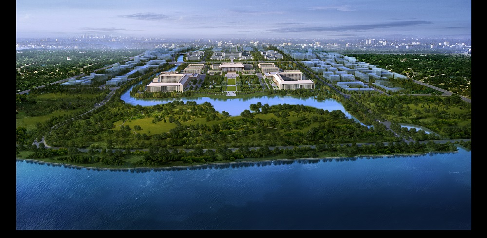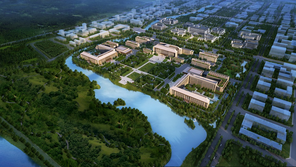 該項(xiàng)目位于北京城市副中心行政辦公區(qū)的核心區(qū)域,在長(zhǎng)安街的東延長(zhǎng)線上,運(yùn)潮減河與北運(yùn)河之間,將成為北京中心城區(qū)功能疏解的重要承接地。行政辦公區(qū)景觀結(jié)構(gòu)為:一條生態(tài)軸貫穿南北,由豐字溝水系和建筑公共綠地組成環(huán)抱行政辦公核心區(qū)的生態(tài)圍合,整體形成全區(qū)山水結(jié)構(gòu)與自然式的園林景觀。