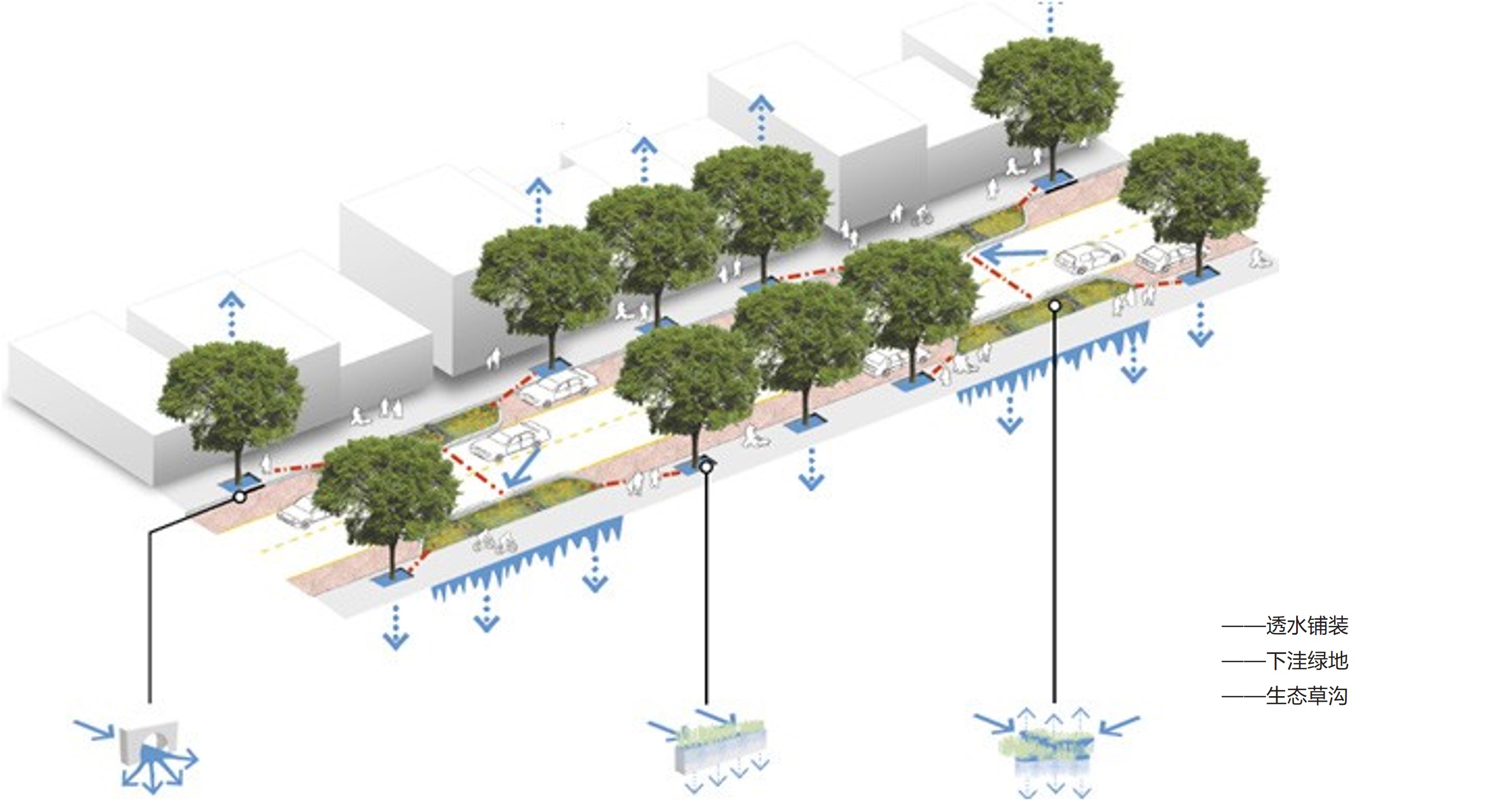 手段 1:道路與景觀結合減速雨水徑流,提升景觀生態效應
