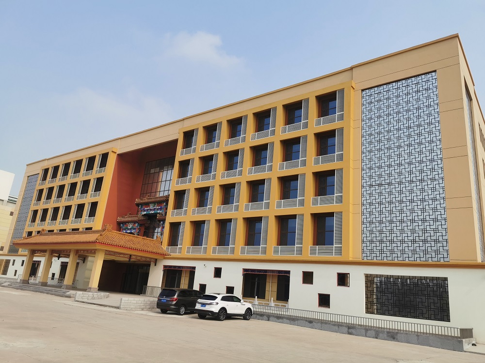 四合院是中國古老、傳統文化象征, 四合院作為北京歷史文化名城的代表建筑, 和稻香村一樣, 同屬北京傳統文化的重要組成部分。 稻香村新廠區的規劃結合北京傳統四合院的布局方式, 將廠區主入口設置于地塊西南角, 辦公配套區和生產車間各自集中布置, 人流和貨運流線互不干擾。 綜合辦公樓采用傳統兩進四合院的布局方式, 前院為主要辦公區, 后院為食堂、宿舍等生活配套區。